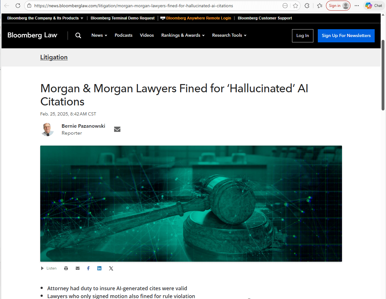 Largest Personal Injury Law Firm in US Fined: AI Cites Don't Exist.